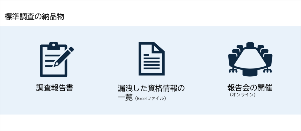 調査結果は報告書として提供します。また、専門知識がなくても状況を理解できるよう、必要に応じてオンライン報告会も実施します。